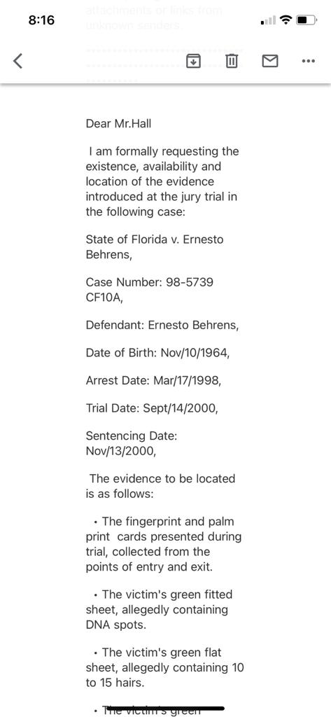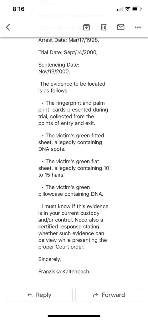 In this page, it is clearly shown that the Clerk of the Court Evidence Custodian has in his possession the evidence that was introduced at trial. Within these nine (9) pages, it is shown the victim’s alleged sheets and her black and white print dress used to wipe semen from the victim’s leg, but left behind at the crime scene by the perpetrator and later on collected by the law enforcement officers. Thus, been that the evidence exist and it is available for retesting, in addition to the the fact that Ernesto’s pro bono DNA Consultant Tiffany Roy is welcome to review and retest the evidence containing DNA in this case, at no cost to the State of Florida, it seems manifestly injustice not to allow Ernesto to perform the necessary testing that could free him from this crime. Every single Court that has reviewed his petition for retesting has been vigorously denying relief.